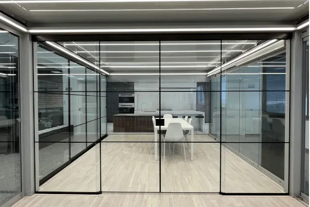 De glazen schuifwanden zijn ontworpen om jouw leven buiten net zo comfortabel te maken als binnen.