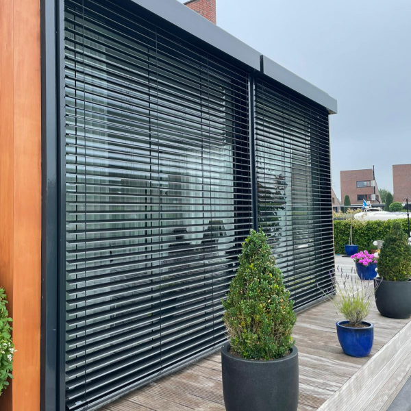 Onze jaloezieën zijn ontworpen om bestand te zijn tegen de zwaarste weersomstandigheden. Gemaakt van hoogwaardig aluminium. Perfect voor elk seizoen, van zomerse hitte tot winterse kou.