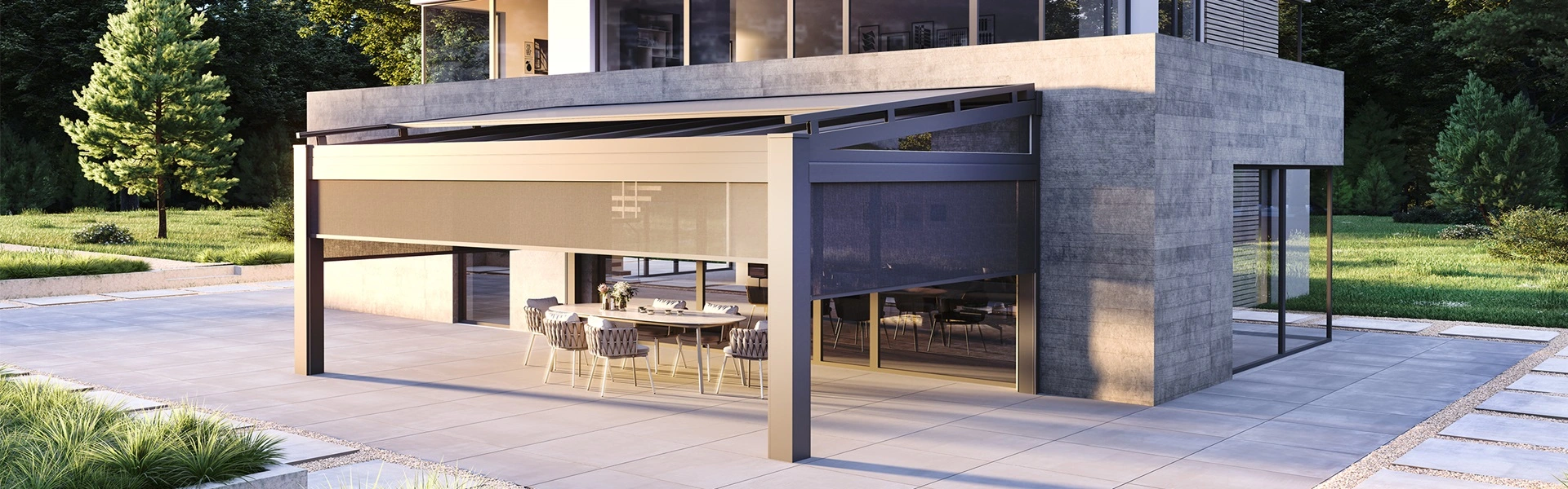 Screens die bescherming bieden tegen de laagstaande zon en nieuwsgierige blikken.