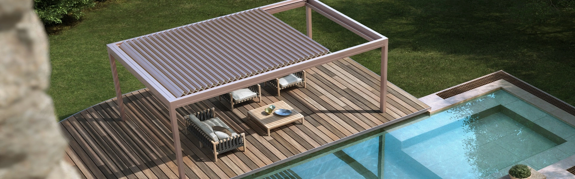 Het Brera lamellendak is niet alleen functioneel, maar ook een stijlvolle aanvulling op elke buitenruimte.