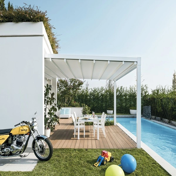 Bedien de overkapping eenvoudig met een afstandsbediening.