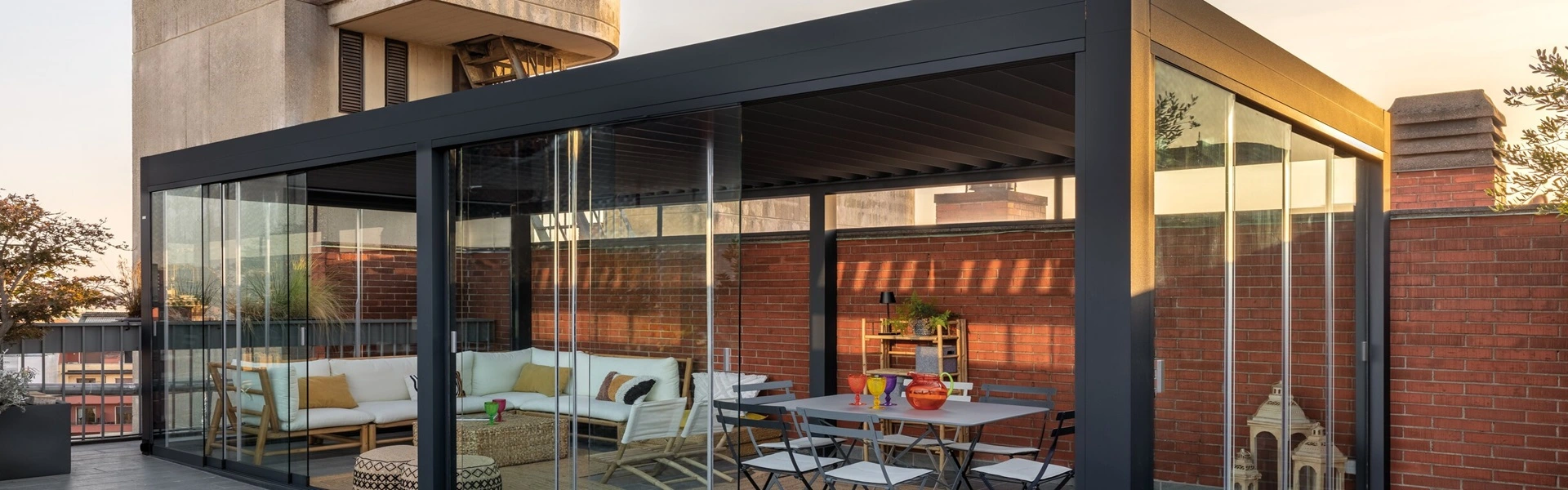 Beleef de vrijheid van buiten, met alle comfort van binnen, met afsluitbare opties en door het lameldak te openen of te sluiten.