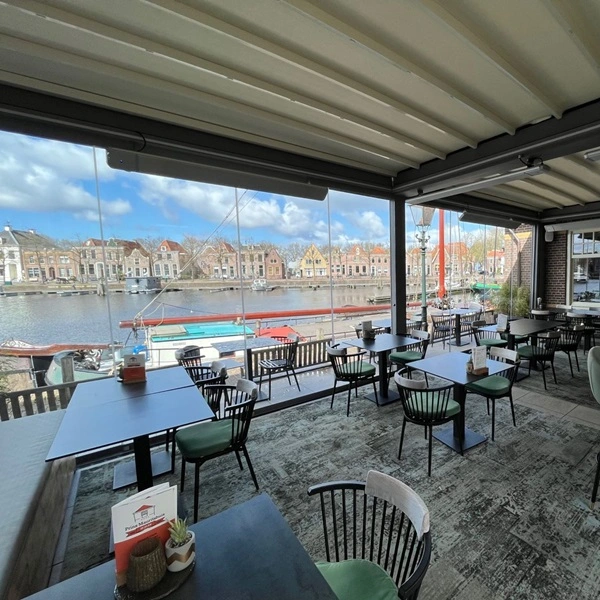 • Terras met glazen overkapping bij Prins Mauritshuis in Blokzijl