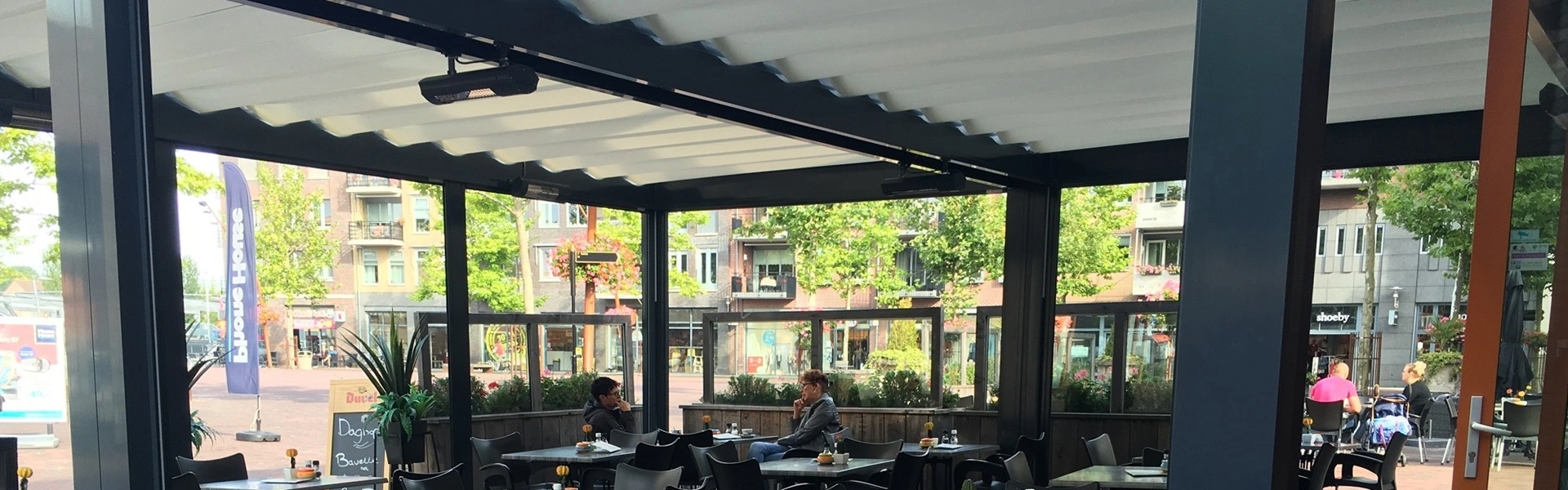 Bij Veldman Zonwering snappen we hoe belangrijk een goede terrasoverkapping is voor horecazaken. Een horeca overkapping met doek doet meer dan alleen bescherming bieden tegen zon en regen. Het maakt je terras een plek waar gasten zich thuis voelen en lekker blijven hangen, ongeacht het weer.