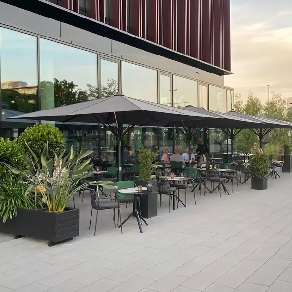Een horeca parasol is meer dan alleen schaduw. Het is een stijlvol verlengstuk van jouw horecazaak. Kies uit diverse kleuren, vormen en maten, afgestemd op jouw wensen. Of je nu een compacte parasol zoekt of een groot exemplaar van wel 78 m², wij hebben de oplossing. Onze parasols zijn bestand tegen hoge windsnelheden en gaan jarenlang mee.